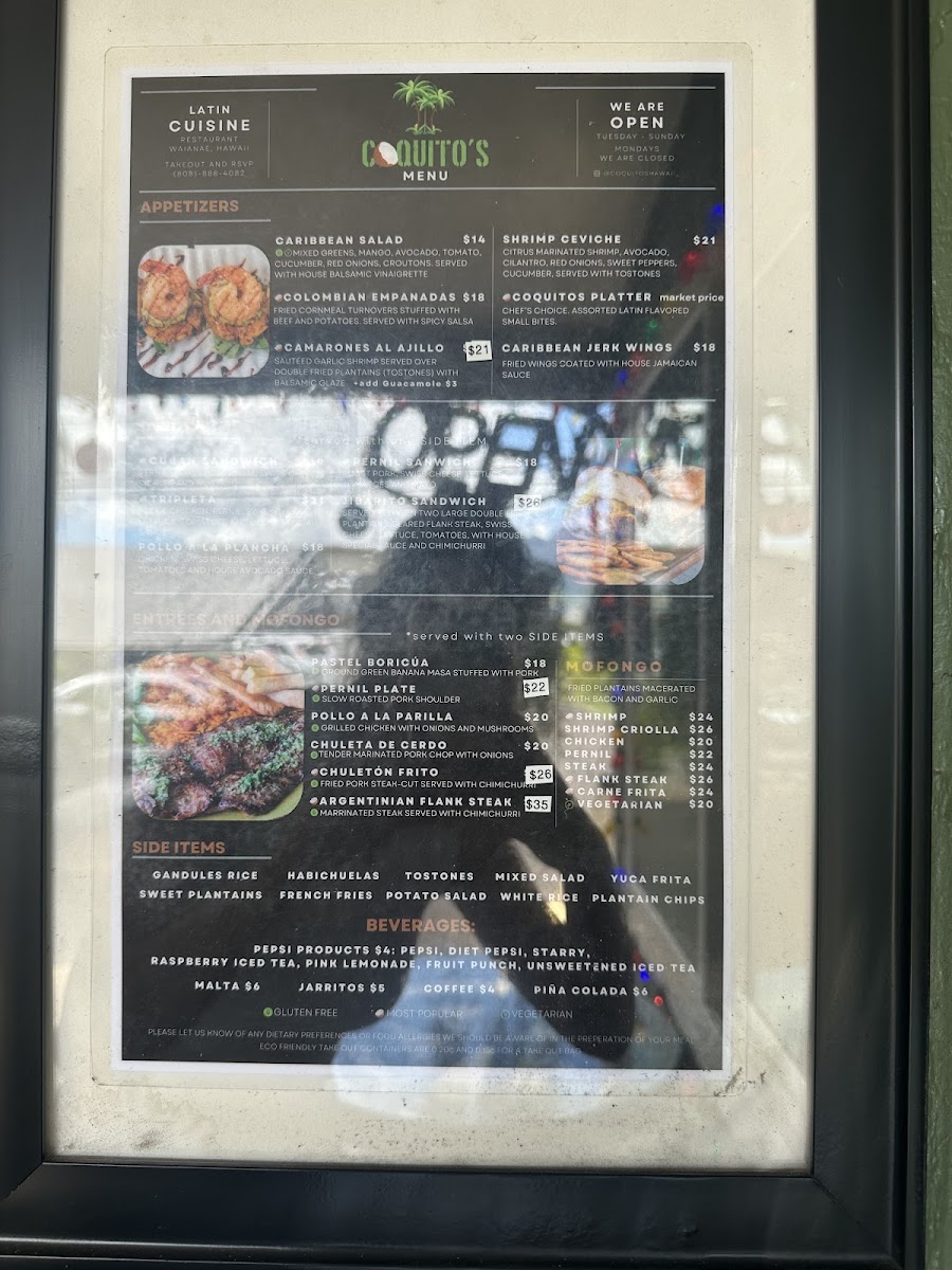 Each entree comes with two sides, such as Tostones and Yucca frita, ensuring a fulfilling meal. Desserts like Flan de queso and Tres Leches offer a sweet finish that will leave you craving more. Coquito’s not only serves food but captures the heart of Puerto Rico, making it a must-visit for anyone seeking authentic Caribbean flavors in Hawaii. Come, experience the true essence of comfort food that’s made with soul!